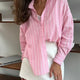 A timeless wardrobe staple with a fresh, on-trend feel. This classic button-down shirt features a crisp silhouette and polished look that works effortlessly dressed up or worn casually. Lightweight and comfortable, it’s perfect for layering or wearing on its own through every season. Style it with denim, trousers, or skirts for an easy, pulled-together look. Available in soft pink with white accents or blue with white accents for versatile styling.