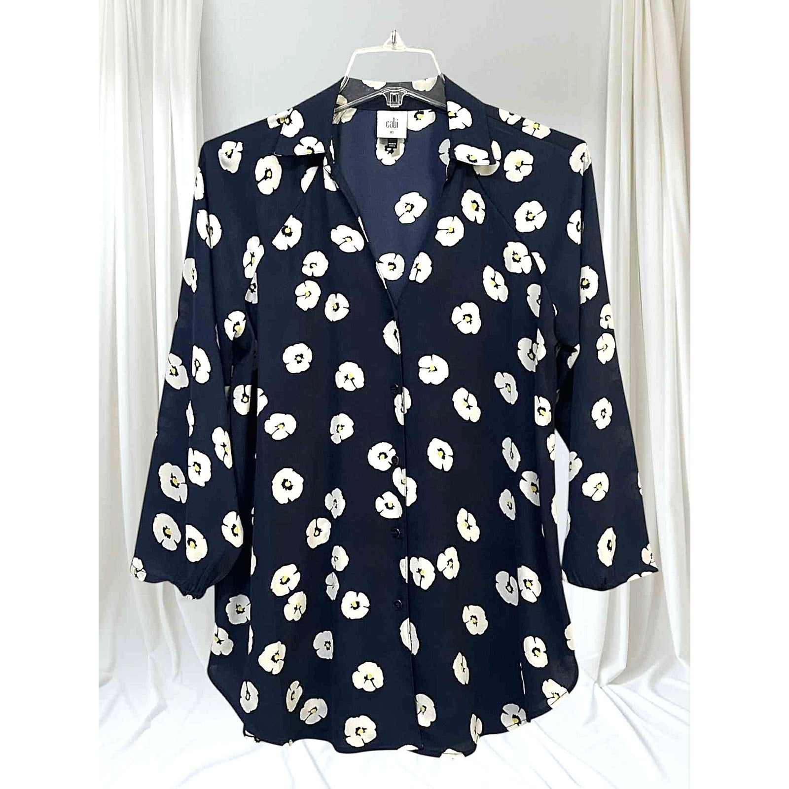 cabi Go To Sheer Floral Button-Up Blouse | Navy & White | Curated Classic