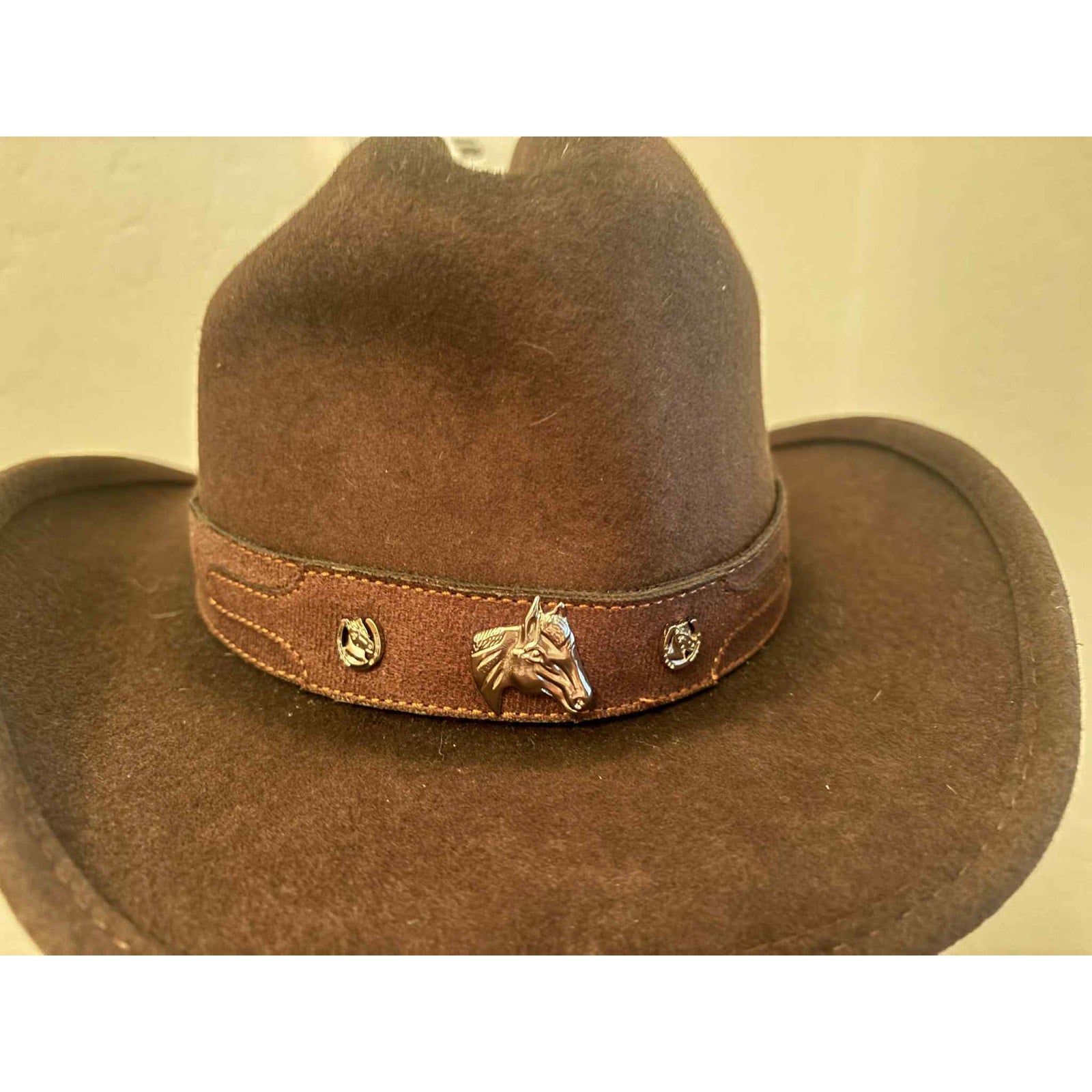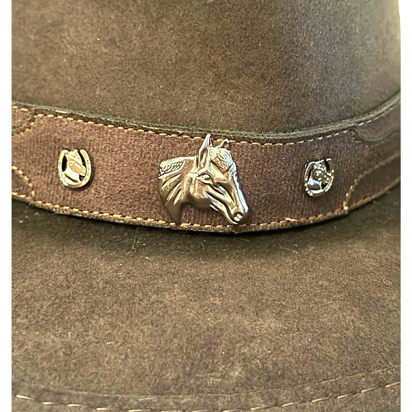 Features: Horsehead hatband accent, Western styling