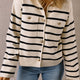 Timeless stripes meet modern functionality in the Genesis Pocket Buttoned Cardigan Sweater, a versatile favorite you’ll reach for all season long. 🖤