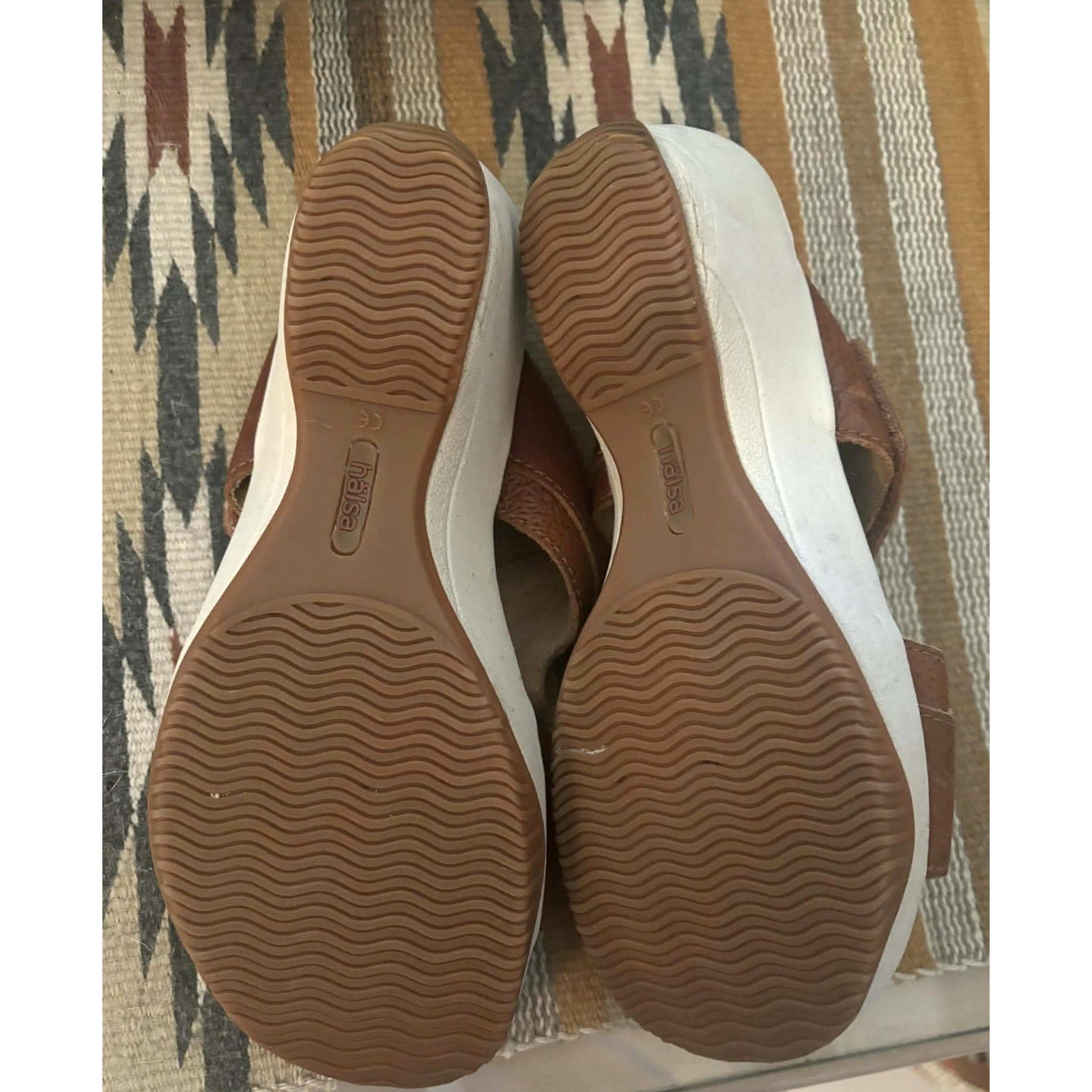 Women’s size 8.5 Medium. In good pre-owned condition with light, normal wear. Some visible wear to the rubber wedge sole (surface lines only), consistent with gentle use. No major flaws noted. Please see photos for details and condition.