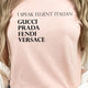 Speak the language of fashion with our I Speak Fluent Italian Designer Graphic Tee. Featuring iconic designer-inspired names in a modern, minimal layout, this tee is a playful nod to timeless Italian style and luxury fashion culture.