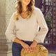 Featuring trendy lantern sleeves, an elegant V-neckline, and a relaxed drop-shoulder silhouette, this sweater blends effortless comfort with refined style. The knot-back detail adds a subtle, fashion-forward surprise — perfect for adding personality to your everyday look.