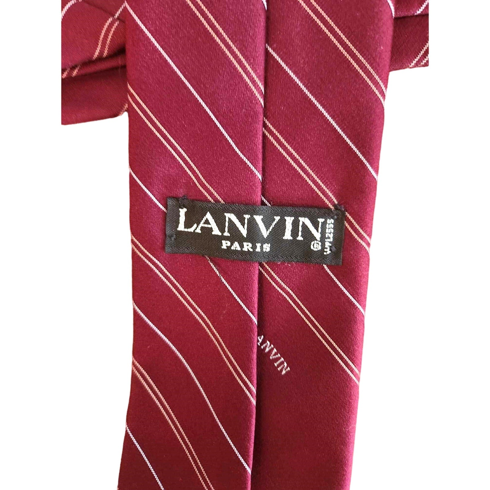 Men's LANVIN Paris Deep Red Repp Yellow White Stripe Silk Tie