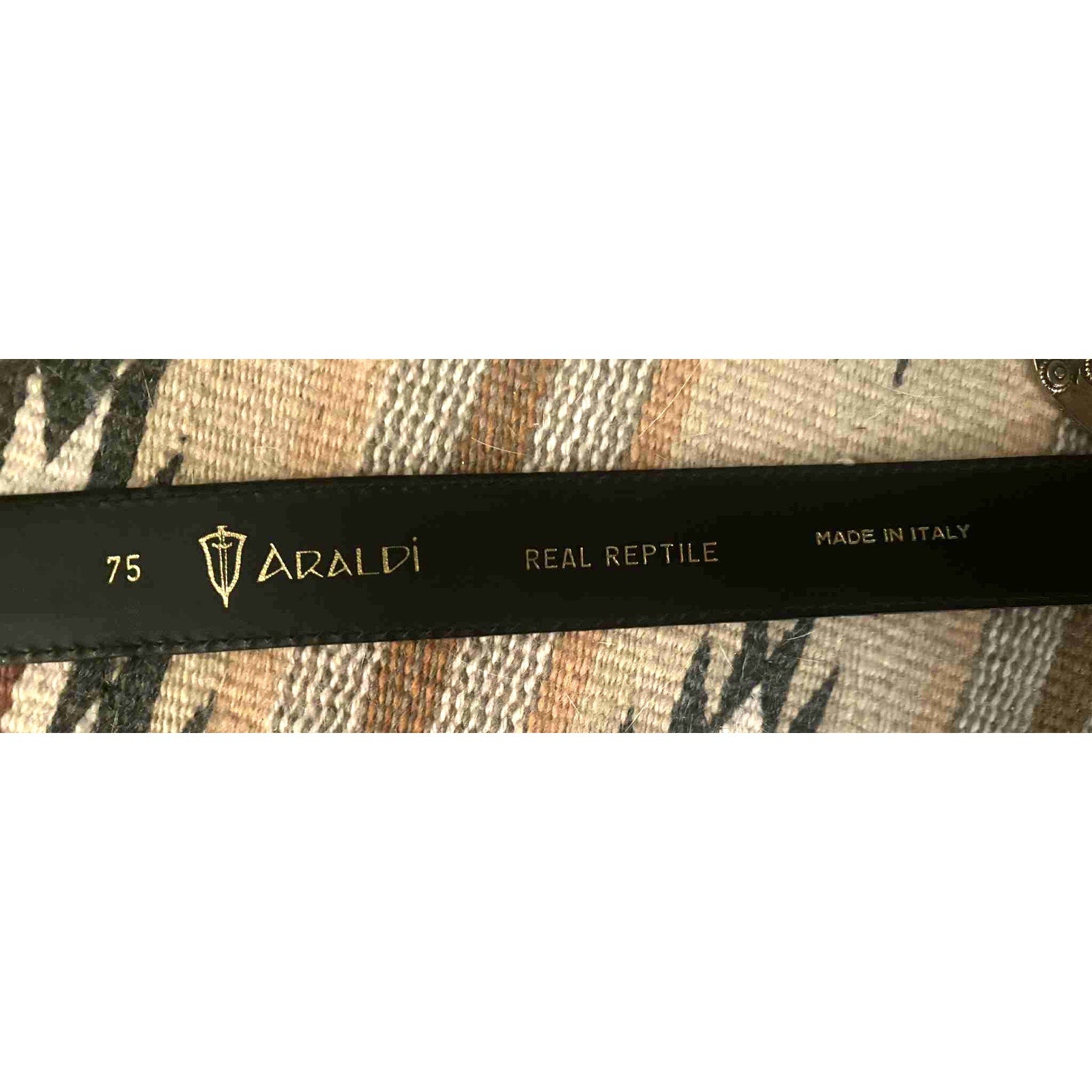 Elevate any outfit with this luxurious Araldi Italian belt, crafted from genuine reptile leather in a striking deep red hue. The bold gold-tone sculpted buckle adds instant sophistication, while the fine Italian craftsmanship makes this a timeless investment piece.