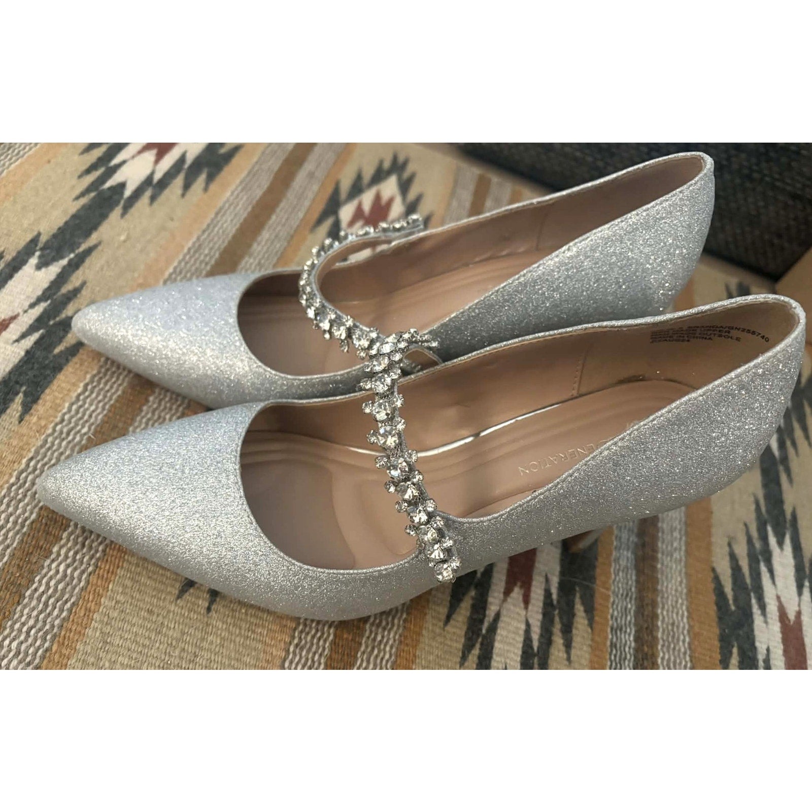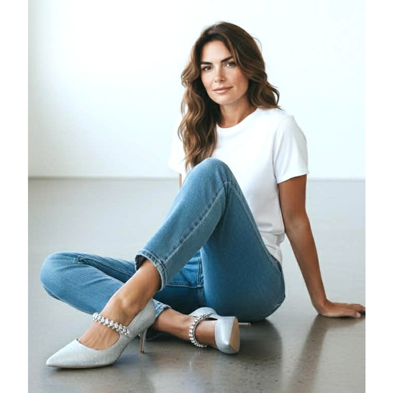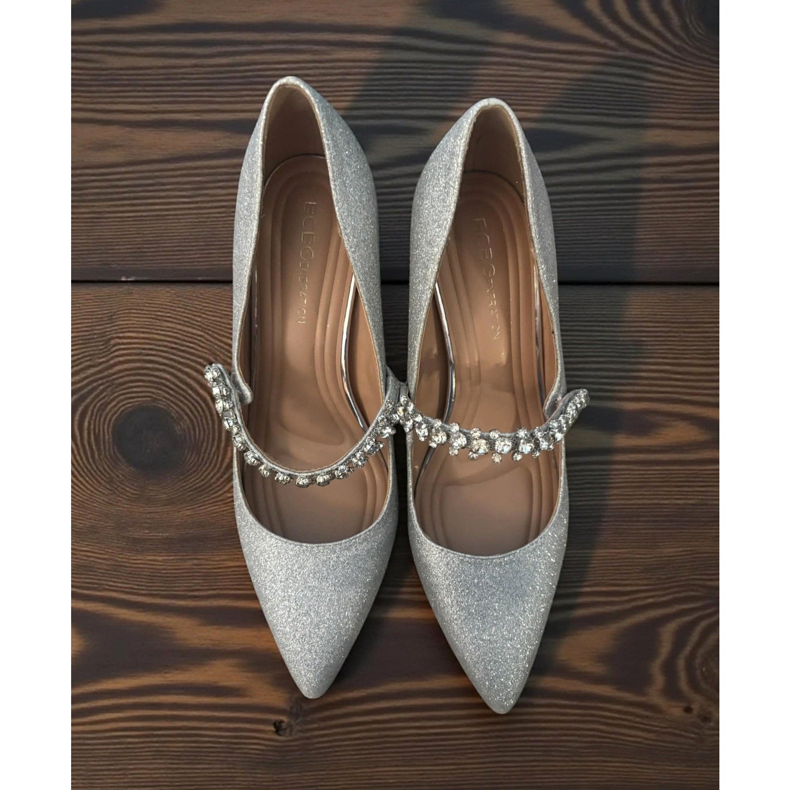 Step into sparkle with these elegant BCBG Generation silver glitter heels. Designed with a flattering pointed toe and a stunning rhinestone-embellished strap, these pumps add instant glam to both casual denim and special-occasion looks.
