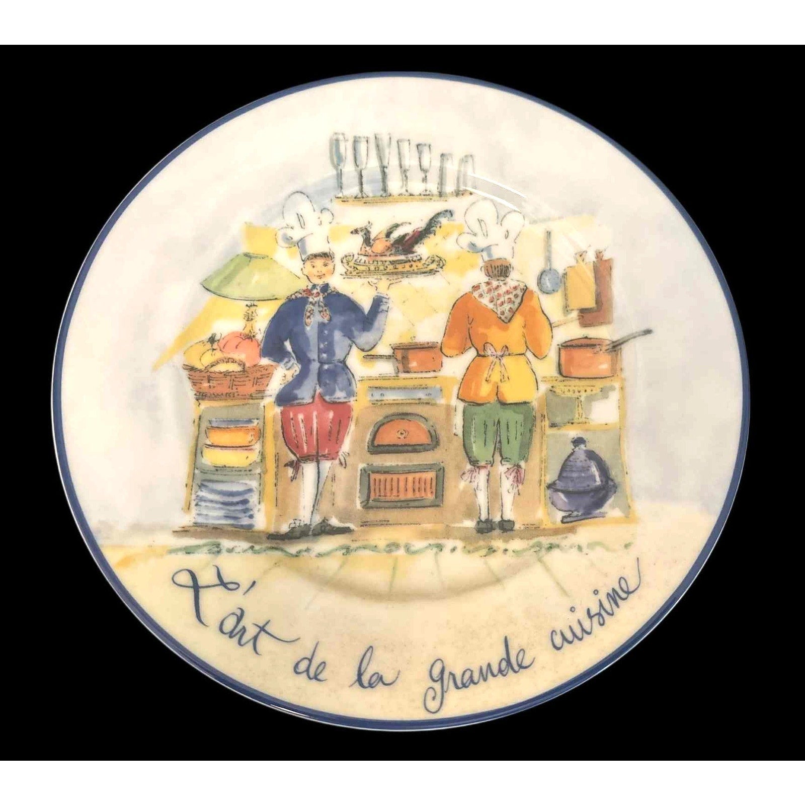 * Design: Colorful 18th-century chefs in a bustling kitchen with cobalt blue rim