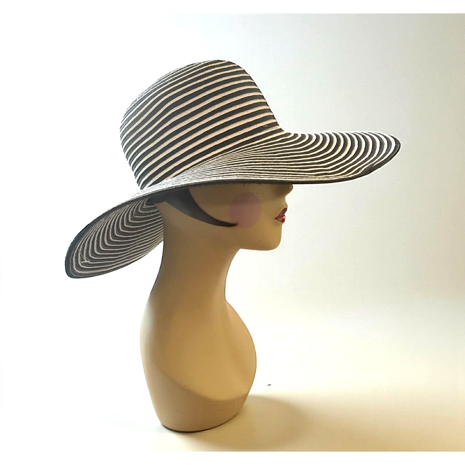 ONLY ONE!!! The Hats Company Filippo Catarzi Italy Black White Stripe Wide Brim Sun Hat EUC!