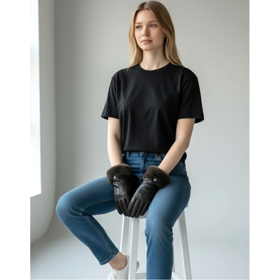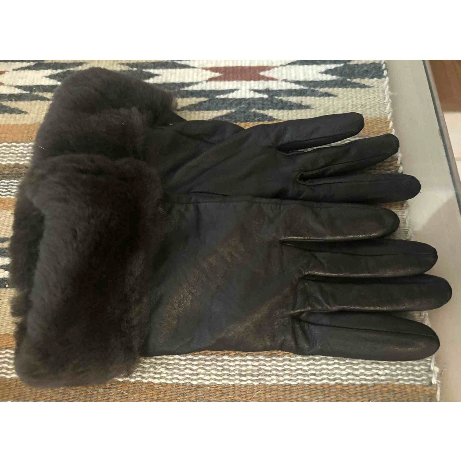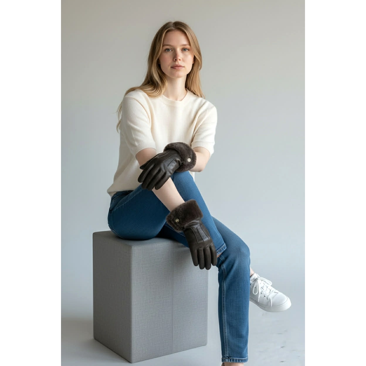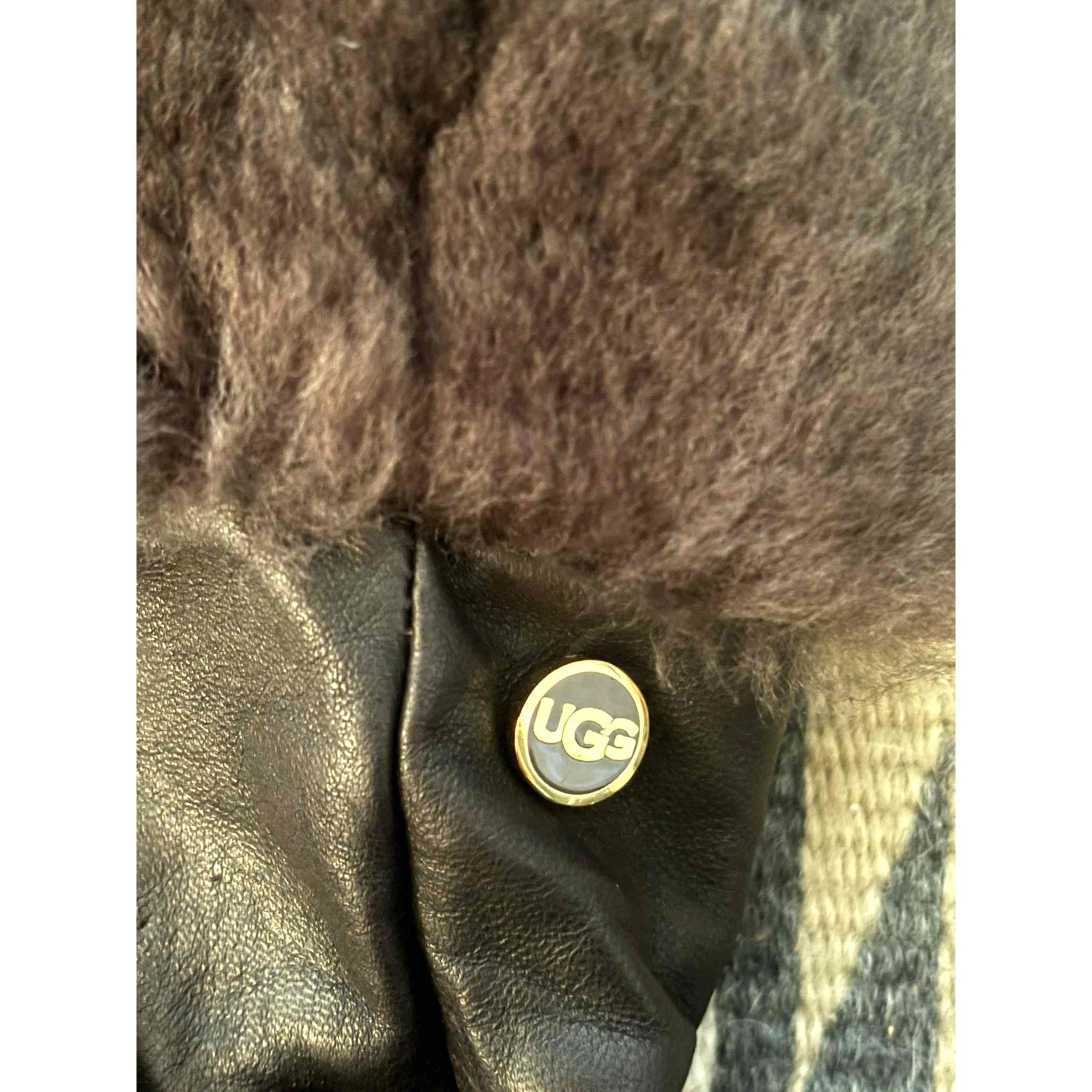 UGG women's gloves crafted from high-quality tech brown leather and trimmed with genuine shearling trim.