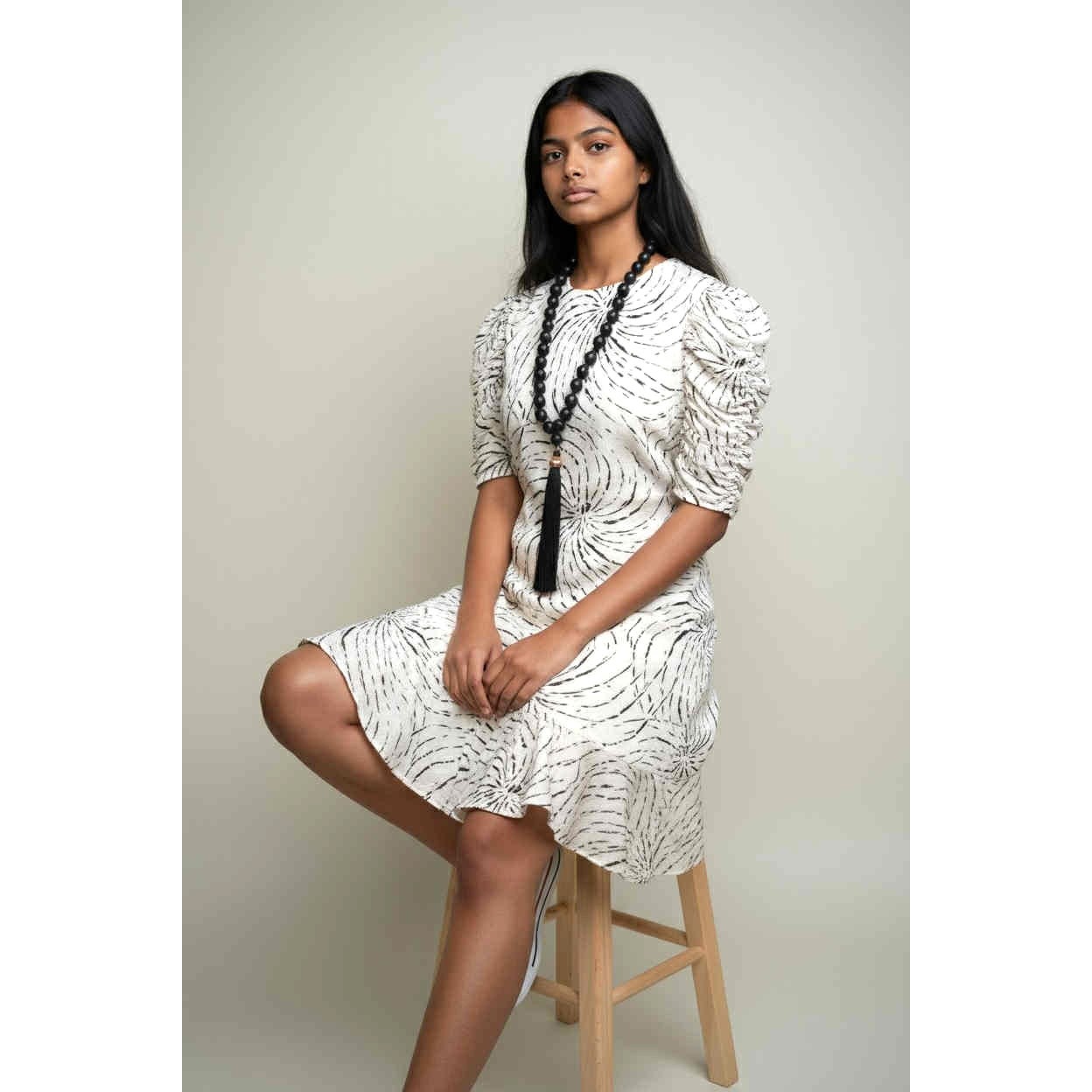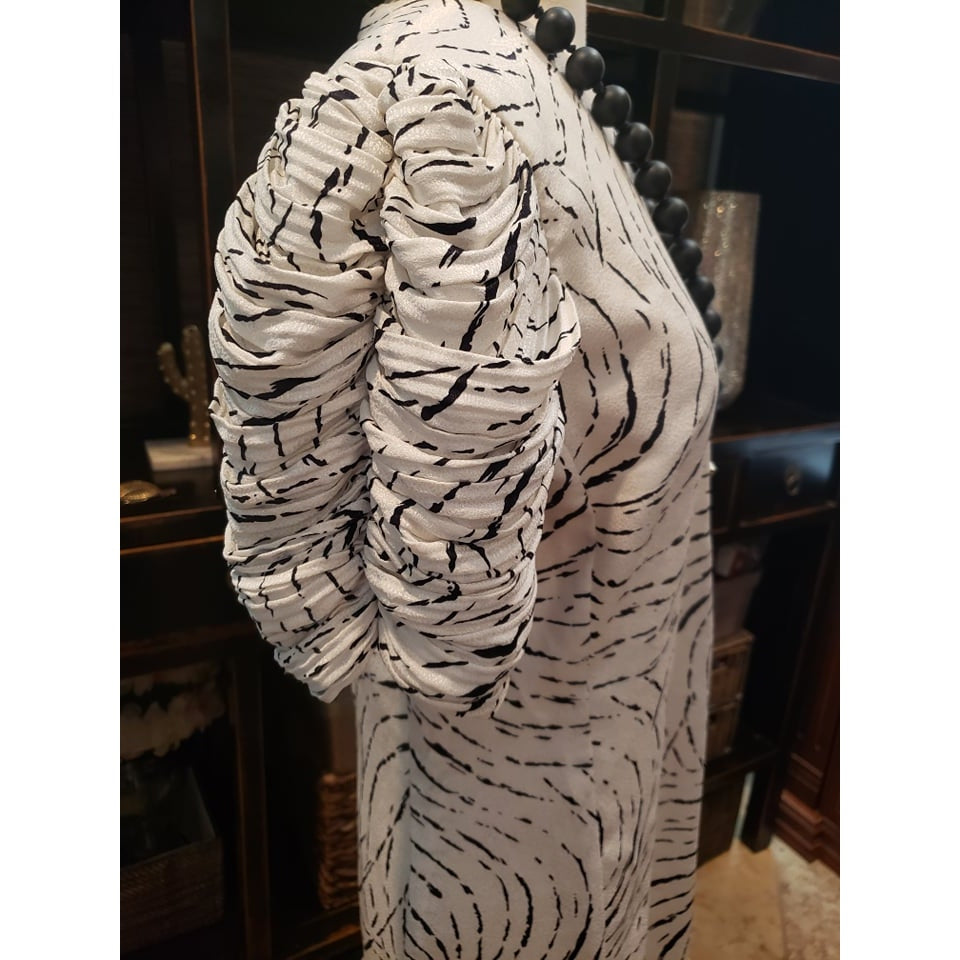 ONLY ONE!!! Vintage 80s Liz Roberts Black & White Dress Puffy Sleeves & Ruffle Hem ~ Size 7/8