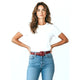 Marked Style #3901, this belt is size Small and adjustable with five holes for a comfortable fit. Well cared for and in very good vintage condition, showing only light wear consistent with age. A beautiful, versatile piece that adds a pop of color while remaining timeless.