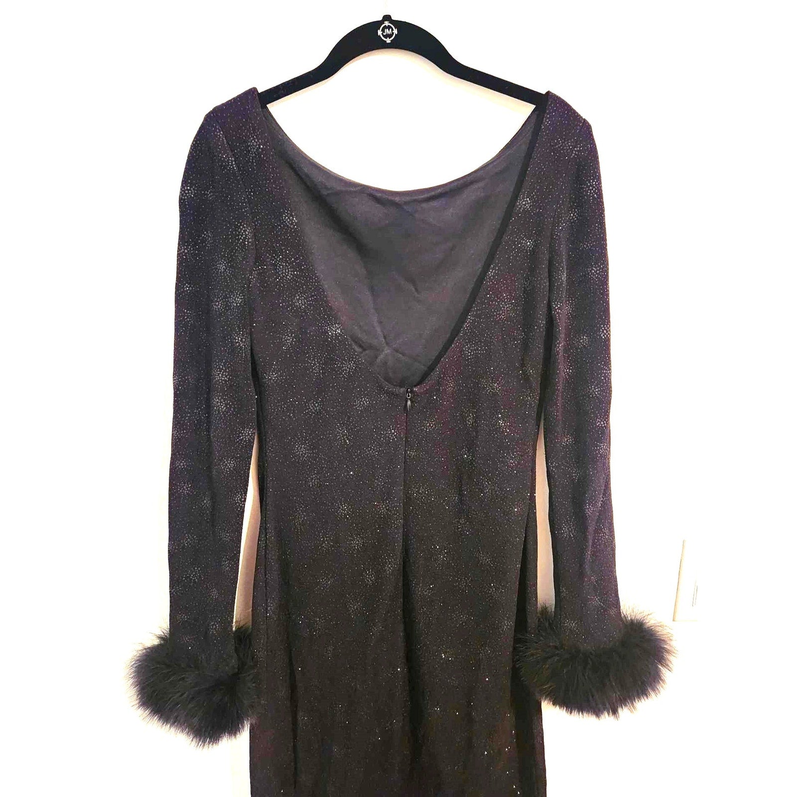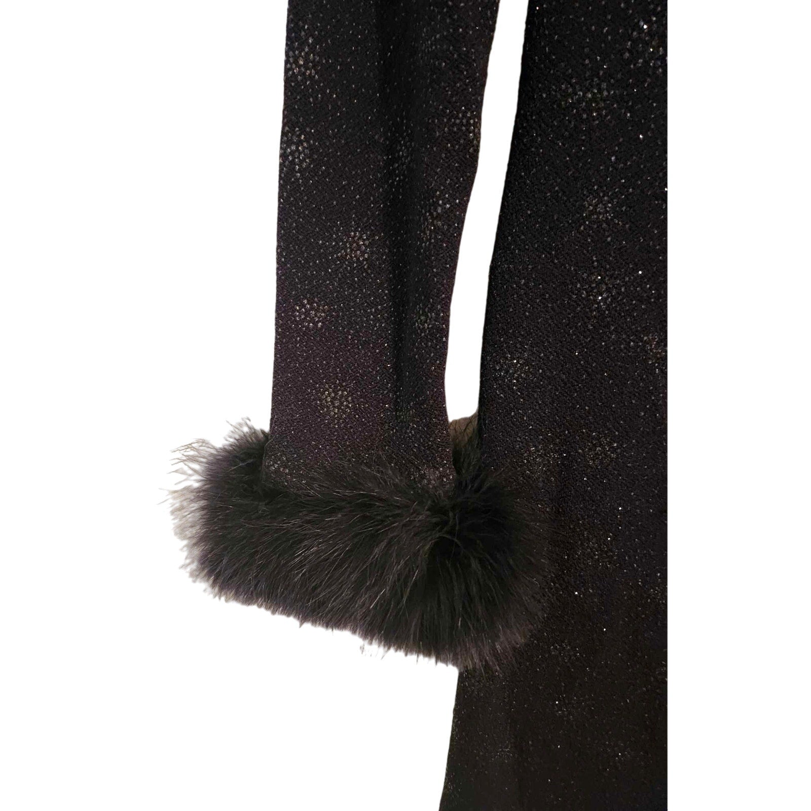ONLY ONE!!! Vintage Evenings By Allen B Long Black Stretch Sparkle Gown ~ Feather Sleeve Cuffs 4