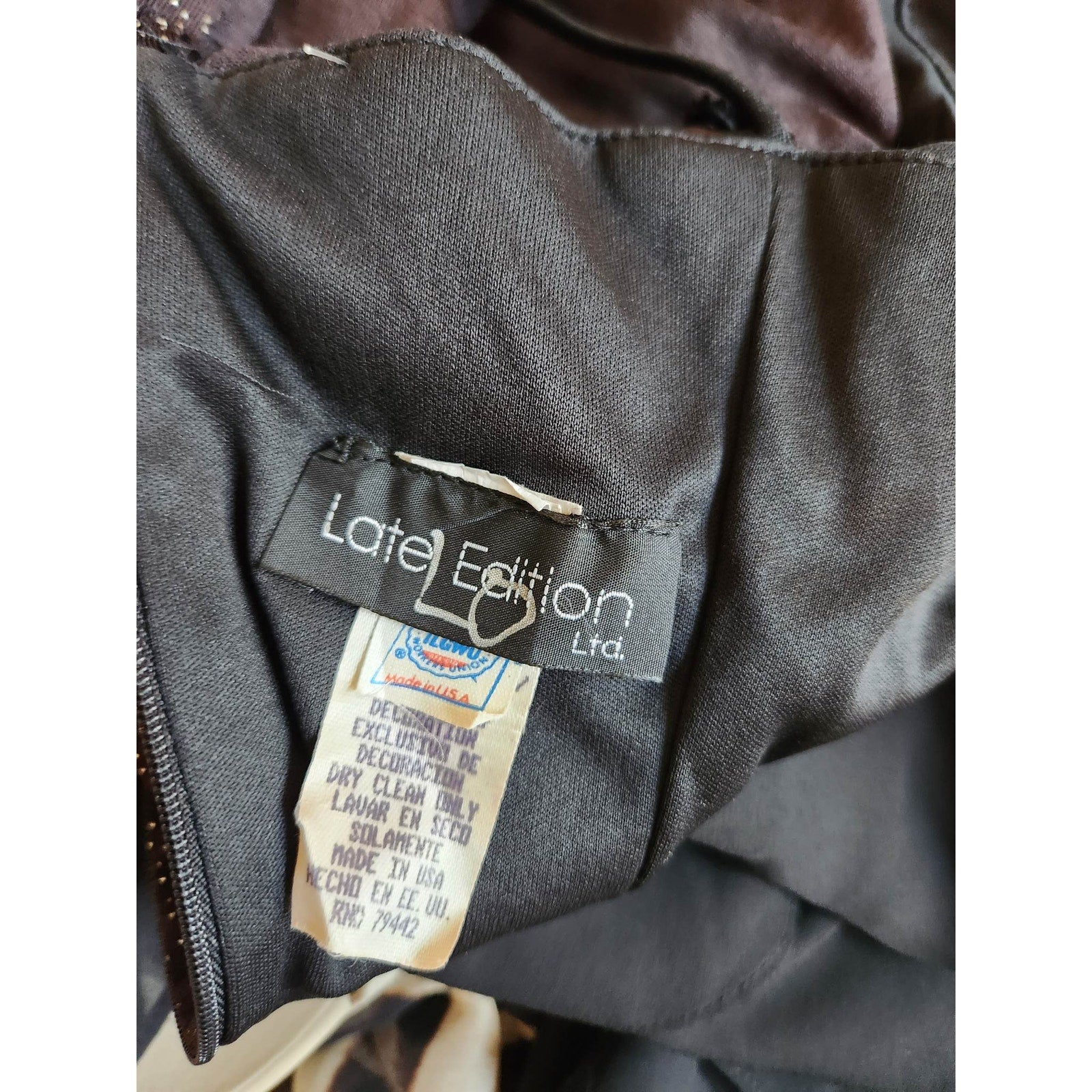 Great condition! Bodice is stretchy, skirt is chiffon. Lined. Zips/buttons in back. Note: First images show modeled styling for visual reference. Actual vintage item shown in final photos.