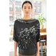 Vintage Oleg Cassini Black Sequin Beaded Silk Top Size S/M Elastic Waist Lined!