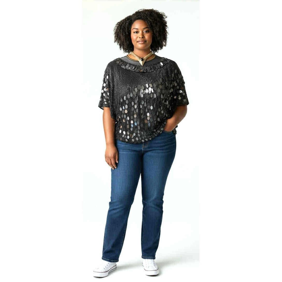 ONLY ONE!!! Vintage Oleg Cassini Black Sequin Beaded Silk Top ~ Size M/L