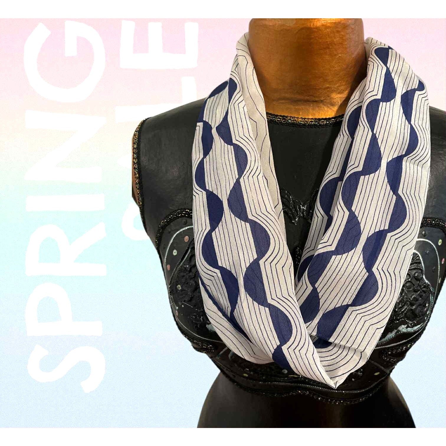 ONLY ONE!!! Vintage Vera Neumann 70s Blue White Mod Signed Silk Blend Scarf