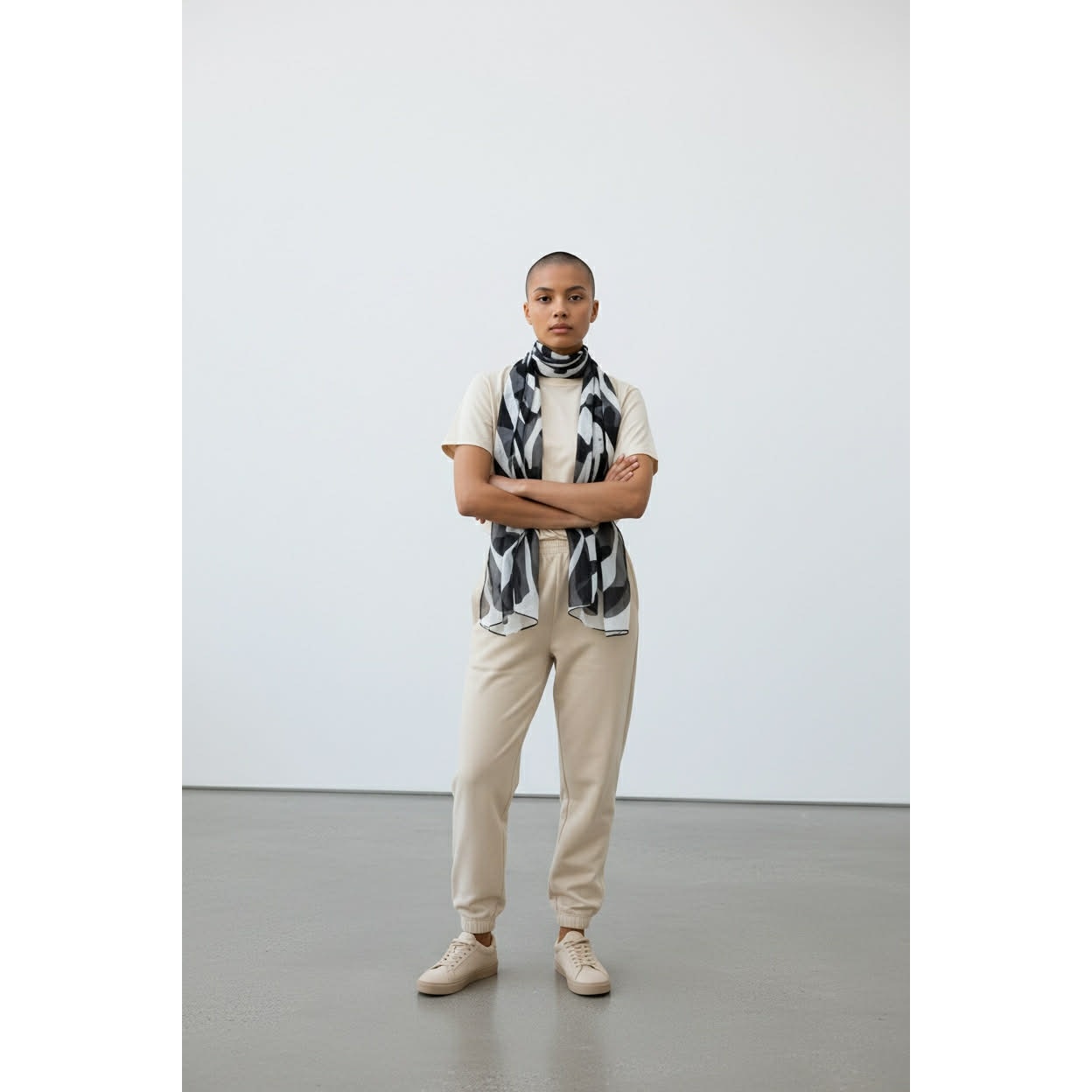 Timeless vintage silk scarf by Vera Neumann, featuring a striking black and white design in lightweight silk chiffon. This elegant oblong scarf is finely crafted with hand-rolled edges and bears the original Vera Neumann signature and tag, a detail prized by collectors.
