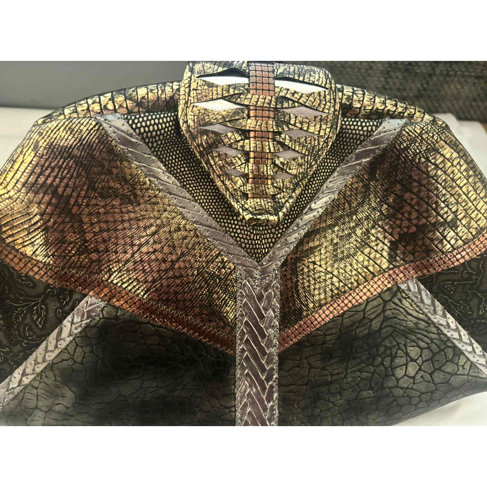 Metallic patchwork: faux snakeskin, embossed, and textured panels