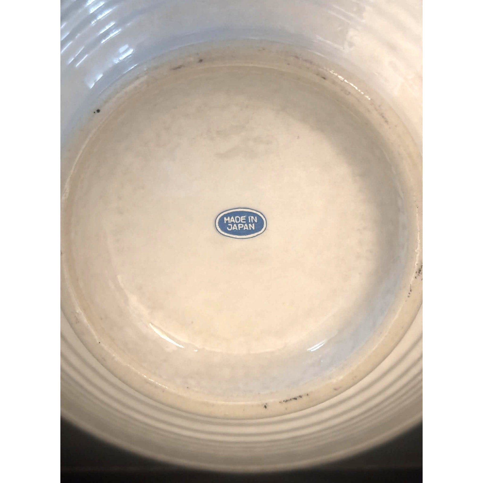 This beautiful set of five vintage stoneware bowls was made in Japan and features a soft cream glaze with a delicate blue rim and abstract brush design. The bowls have a classic wide shape, perfect for ramen, udon, pho, soups, salads, or grain bowls.