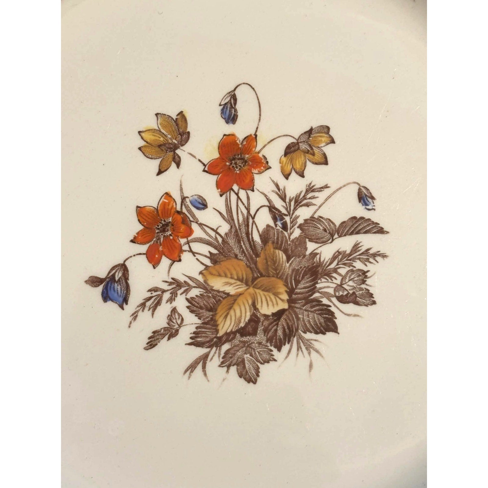 Classic vintage Johnson Bros Old English Clover dinner plate, made in England. This 10-inch plate features a timeless English country floral design with clover, wildflowers, and scrolling foliage in warm neutral tones. Crafted from durable ironstone, it’s perfect for collectors, cottagecore décor, or layering into a traditional table setting. A beautiful example of mid-century English ceramics.